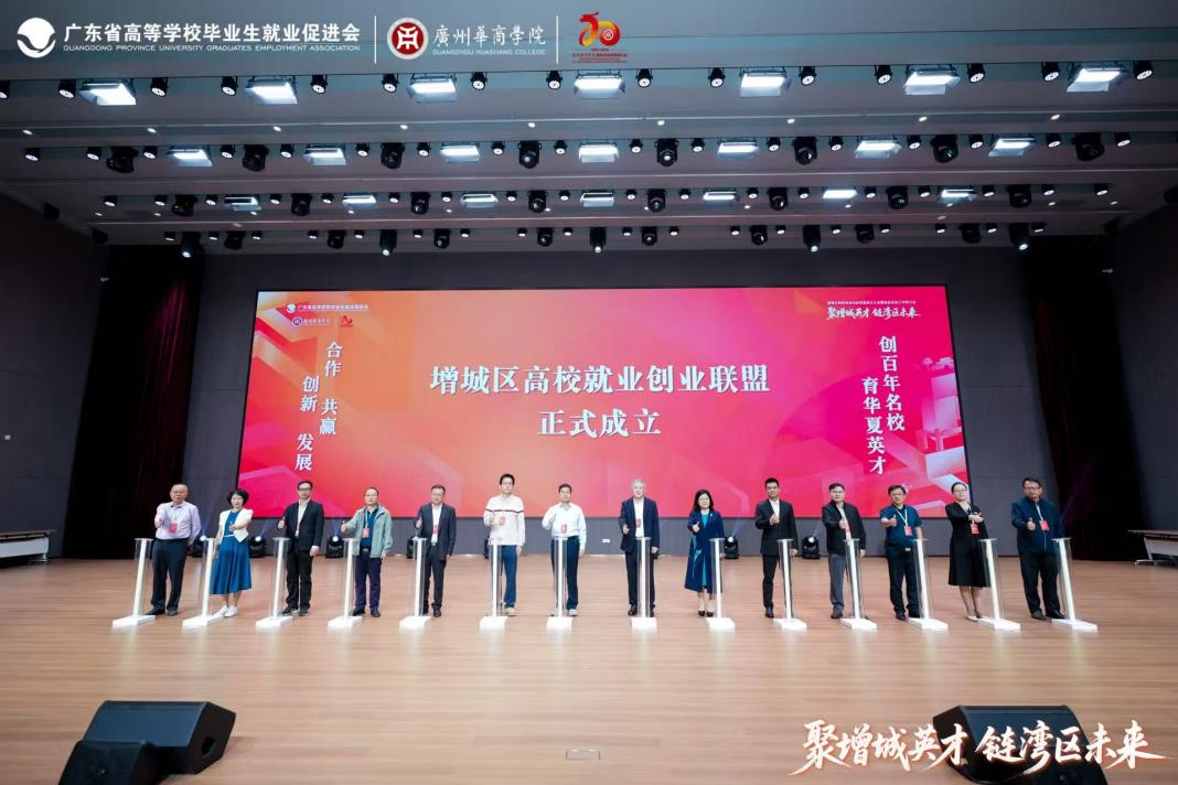 增城区高校就业创业联盟是在广东省高等学校毕业生就业促进会指导下,由广州华商学院牵头,联合区域内多所高校共同发起建立的区域性、非营利性合作组织。联盟的成立,代表着区域教育协同与就业服务机制建设迈出关键一步,为校地联动赋能人才发展搭建了重要平台。作为联盟发起与承办单位,广州华商学院将持续深化就业创业教育改革,携手联盟内高校、企业及行业协会,搭建资源共享与经验交流平台,推动区域就业创业教育质量整体提升,为增城区乃至广东省的高质量发展培养更多复合型、应用型人才。